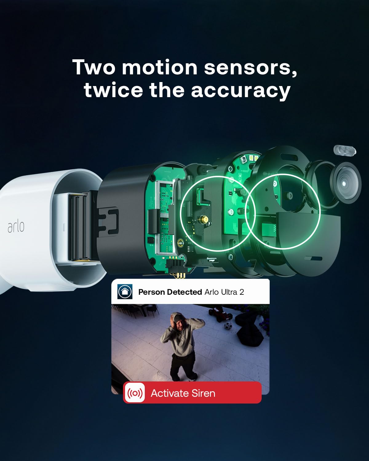 - NOISE & ECHO CANCELLATION + LOCAL STORAGE: The Ultra 2 Built-in speaker & microphone provides noise & echo cancellation, so you can hear and speak to your guests clearly even if it's windy. Pair Arlo products with the Arlo Ultra SmartHub to unlock MicroSD local video storage, optimised camera functionality and improved battery life.