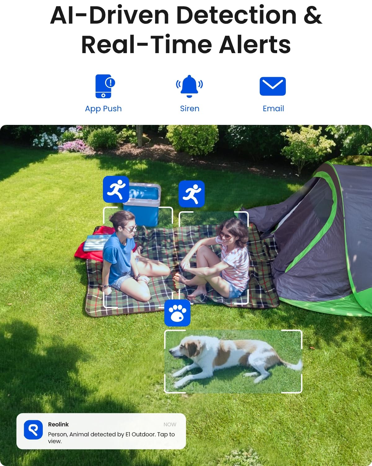 - 5MP and Full-Color Night Vision: 2560 x 1920 5MP Super HD resolution provides you with a clearer visual quality & smoother live viewing experience. Combined with 12pcs Infrared LEDs and 4pcs Spotlight LEDs, Reolink E1 Outdoor delivers full-color videos even after sundown